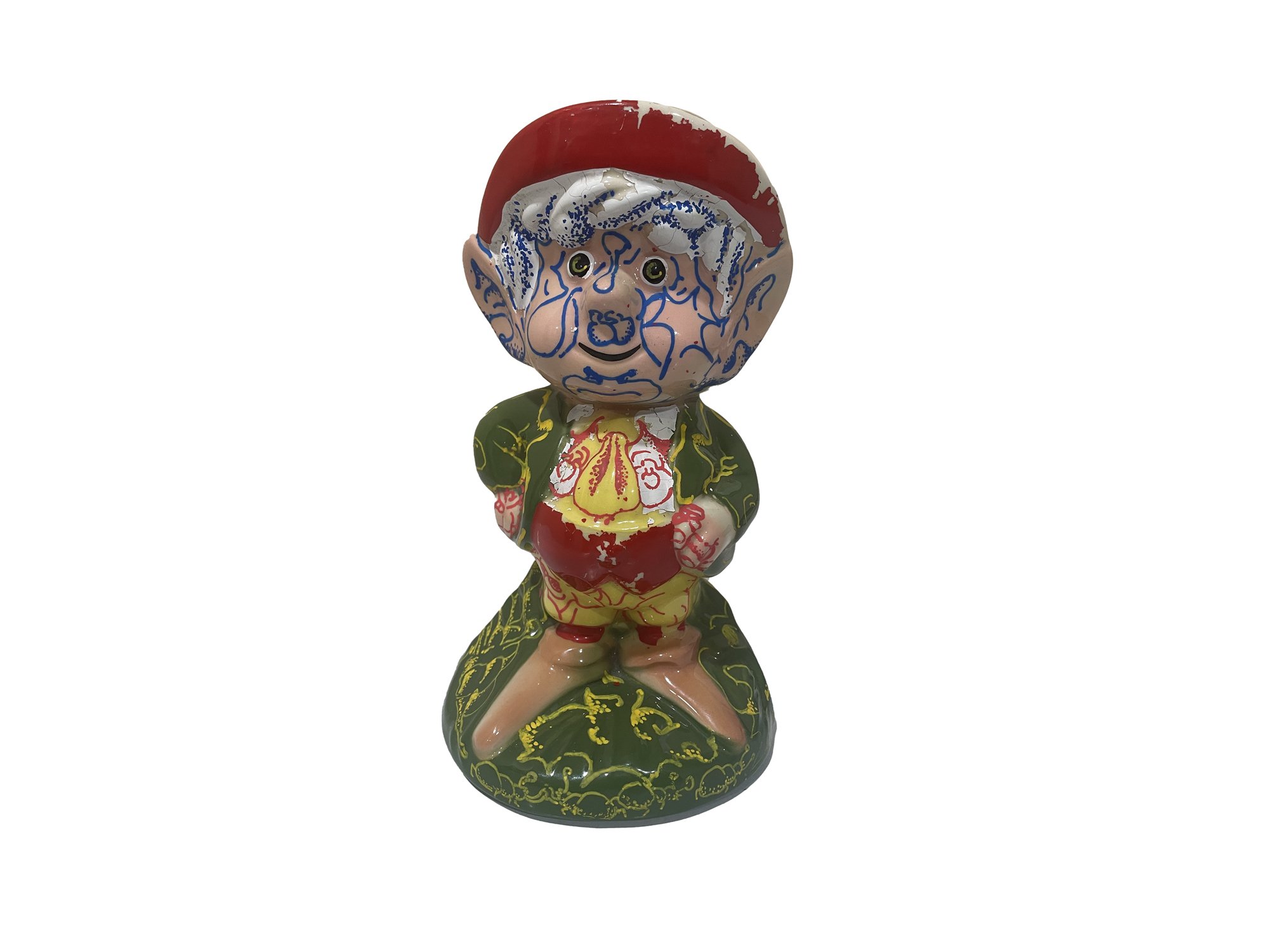 Radiant porcelain gnome painted on with Posca markers. The clash of fun, innocent cartoon imagery with rebellious tattoo culture.